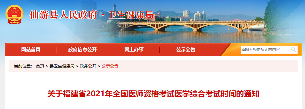 仙游縣轉(zhuǎn)發(fā)福建省2021年全國醫(yī)師資格考試醫(yī)學(xué)綜合考試時(shí)間的通知