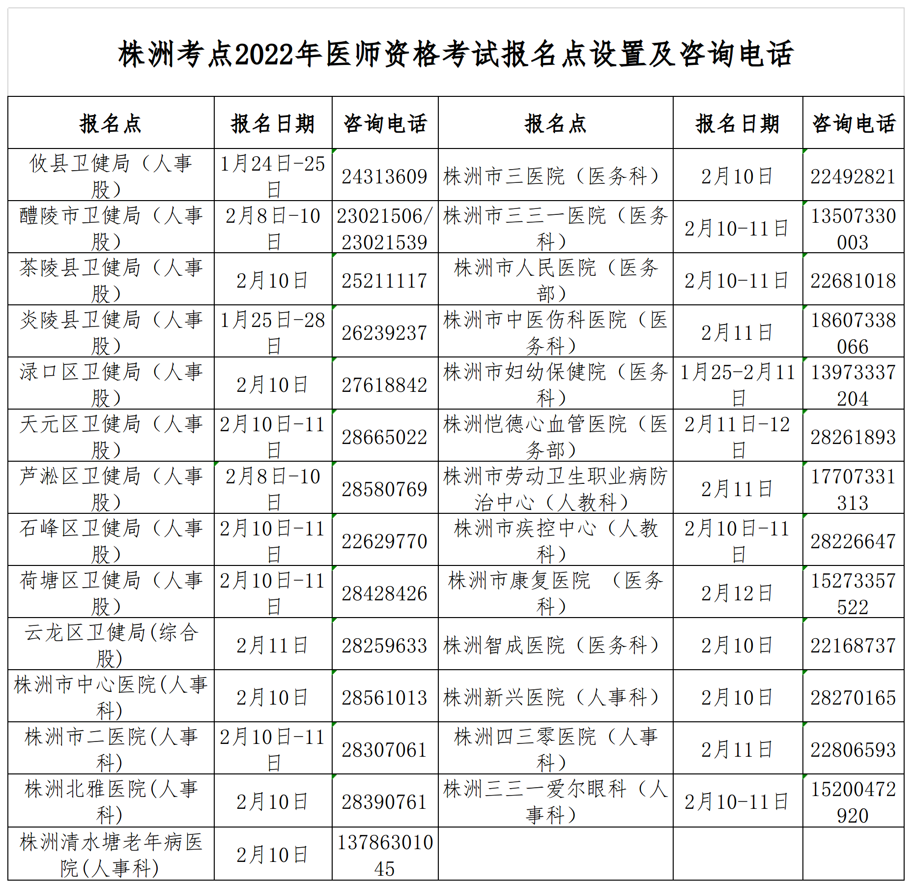 2022年湖南株洲考點(diǎn)醫(yī)師資格考試報名點(diǎn)和聯(lián)系電話表