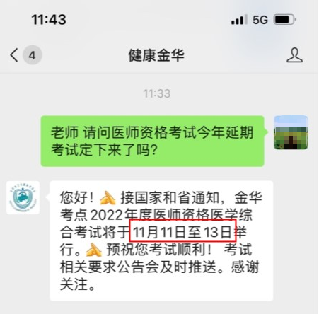 同時,小編也電話咨詢了同樣延期的溫州考點(0577-55570357),得到的回復為:溫州考點2022醫(yī)師資格考試延期考試將于11月份進行。