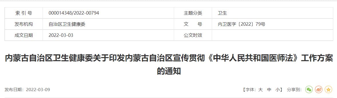 關(guān)于印發(fā)內(nèi)蒙古自治區(qū)宣傳貫徹《中華人民共和國醫(yī)師法》工作方案