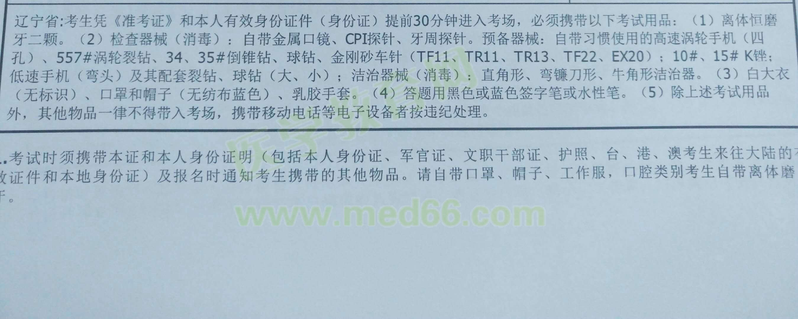 根據(jù)醫(yī)學(xué)教育網(wǎng)校沈陽地區(qū)的學(xué)員反饋,遼寧省口腔執(zhí)業(yè)醫(yī)師資格考試準(zhǔn)考證已經(jīng)可以打印,并且根據(jù)準(zhǔn)考證上要求,需要考生自行攜帶的考試用具很多(是相當(dāng)多?。。?,還沒有打印準(zhǔn)考證的考生建議盡快打印,提前準(zhǔn)備考試用具!