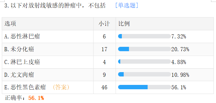 以下對放射線敏感的腫瘤中,不包括哪種?(??颊_率為56.1%)