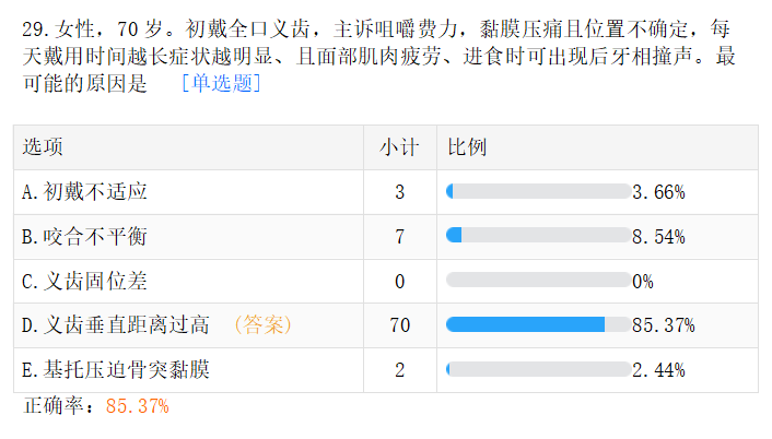 以上就是醫(yī)學(xué)教育網(wǎng)關(guān)于“【正確率85.37%】義齒垂直距離過高——案例題”的相關(guān)介紹,希望能夠幫助到大家,更多資訊盡在醫(yī)學(xué)教育網(wǎng)口腔執(zhí)業(yè)醫(yī)師欄目!