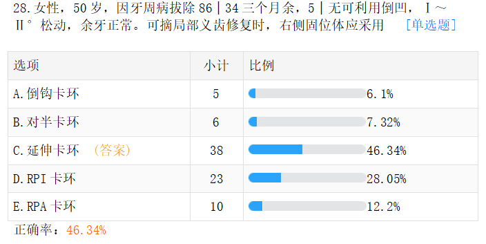 【2022口腔重要知識(shí)點(diǎn)】關(guān)于倒鉤卡環(huán)、RPI卡環(huán)和RPA卡環(huán)如何區(qū)分?此次口腔醫(yī)師???strong>正確率為46.34%。各位考生經(jīng)過了春節(jié)假期短暫的放松,現(xiàn)階段應(yīng)該收心復(fù)習(xí)了,醫(yī)學(xué)教育網(wǎng)為您精心挑選了50道模擬測試題,快來測測你的水平吧!立即免費(fèi)參與>>