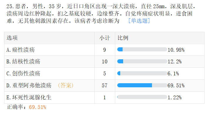 以上就是醫(yī)學(xué)教育網(wǎng)關(guān)于“【正確率為69.51%】重型阿弗他潰瘍”的相關(guān)介紹,希望能夠幫助到大家,更多資訊盡在醫(yī)學(xué)教育網(wǎng)口腔執(zhí)業(yè)醫(yī)師欄目!