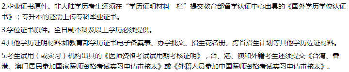 7.報(bào)考傳統(tǒng)醫(yī)學(xué)師承或確有專長(zhǎng)類別醫(yī)師資格考試的,還須在畢業(yè)證書一欄提交《傳統(tǒng)醫(yī)學(xué)師承出師證書》或《傳統(tǒng)醫(yī)學(xué)醫(yī)術(shù)確有專長(zhǎng)證書》。