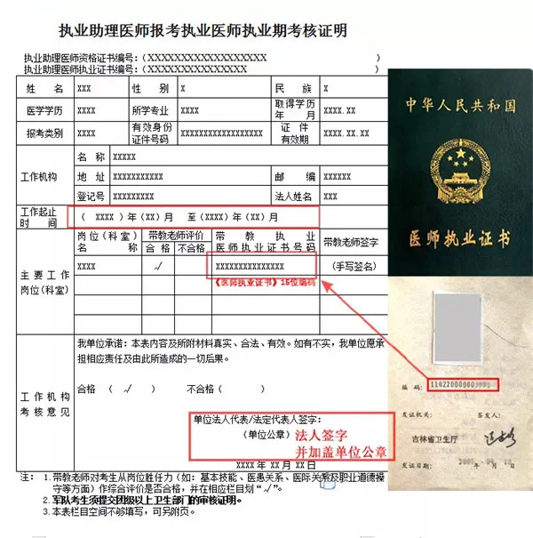 6.《醫(yī)師資格考試試用期考核證明》,須試用單位法定代表人簽字并加蓋單位公章(醫(yī)療專用章、財(cái)務(wù)專用章等不合格,表內(nèi)所有簽字處均需手寫簽字)。