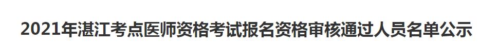 根據(jù)國(guó)家和省關(guān)于2021年醫(yī)師資格考試工作的安排,2021年醫(yī)師資格考試考生報(bào)名資格審核工作已結(jié)束。經(jīng)考點(diǎn)審核及考區(qū)復(fù)核,湛江考點(diǎn)共3340名考生符合報(bào)考條件,現(xiàn)將名單予以公示。公示期間,如報(bào)考人員對(duì)報(bào)名資格有異議,請(qǐng)?jiān)诠酒趦?nèi)向我局醫(yī)政科如實(shí)反映情況。