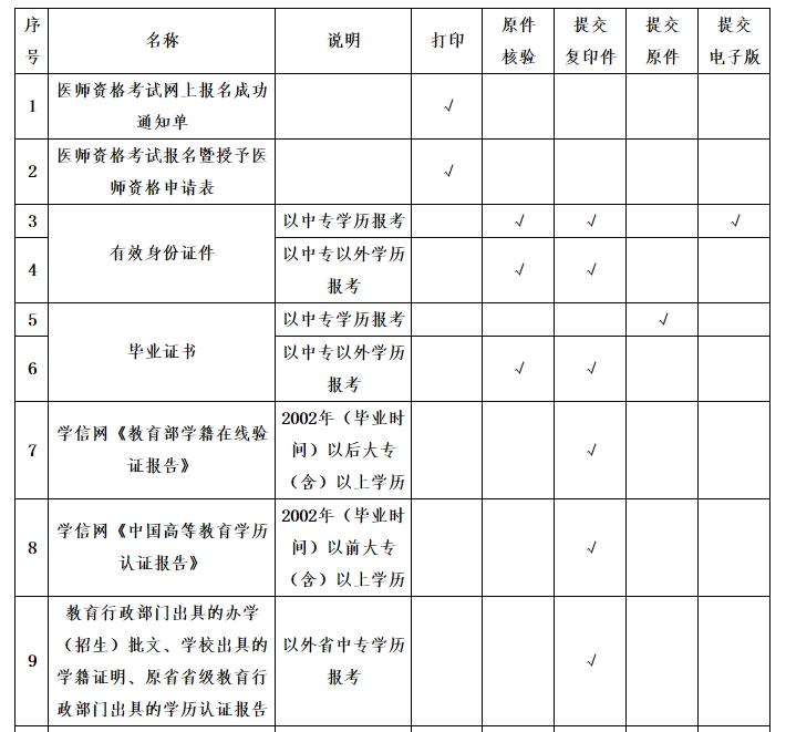 云南省醫(yī)師資格考試考生現(xiàn)場(chǎng)審核提交材料