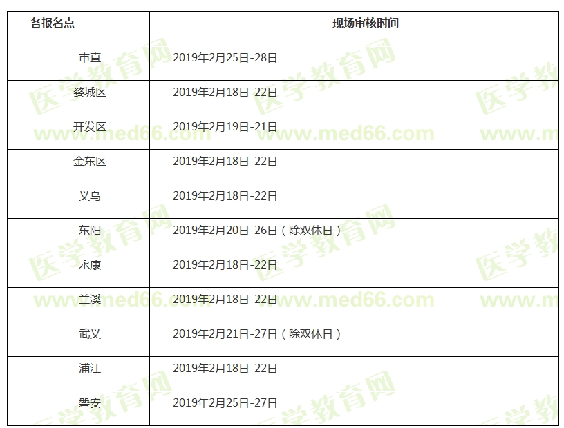 金華市各報名點現(xiàn)場審核確認(rèn)時間
