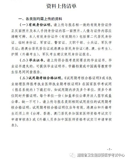 2022年醫(yī)師資格考試湖南考區(qū)各類別均需上傳資料清單!