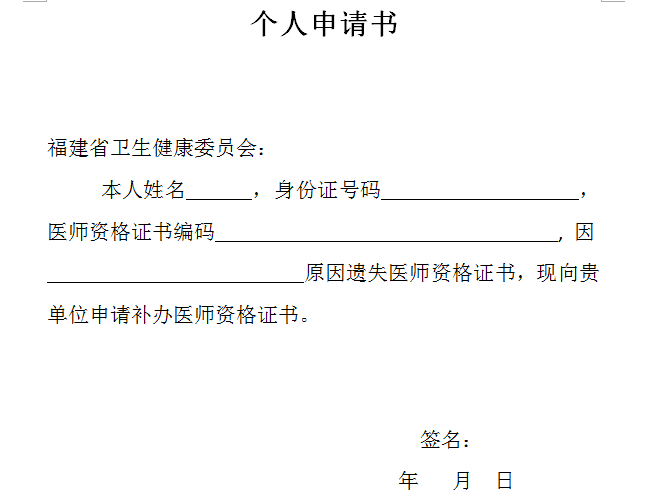 福州考點(diǎn)口腔執(zhí)業(yè)醫(yī)師資格證書(shū)遺失補(bǔ)辦個(gè)人申請(qǐng)書(shū)