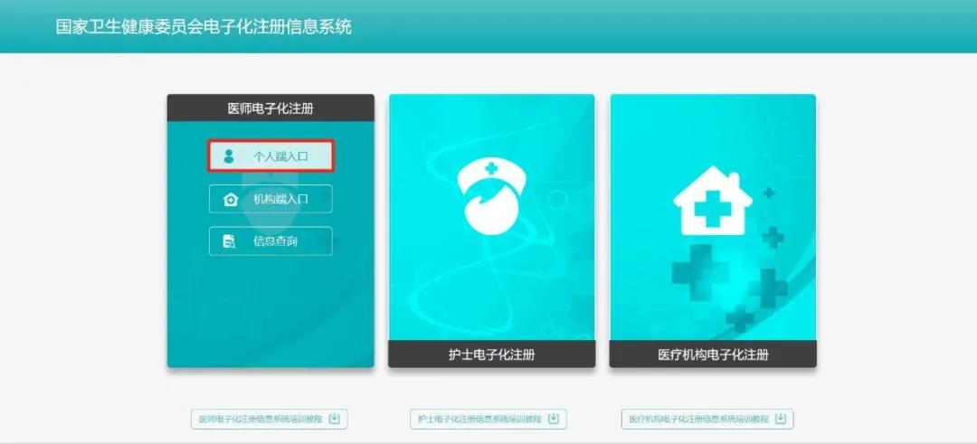 2、在“國(guó)家衛(wèi)生健康委員會(huì)電子化注冊(cè)信息系統(tǒng)”頁(yè)面,點(diǎn)擊“醫(yī)師電子化注冊(cè)--個(gè)人端入口”。