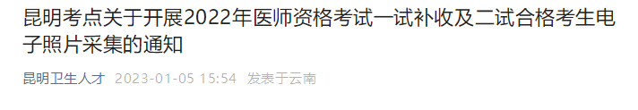 昆明衛(wèi)生人才發(fā)布了昆明考點關于開展2022年醫(yī)師資格考試一試補收電子照片采集的通知,醫(yī)學教育網(wǎng)小編專門整理如下: