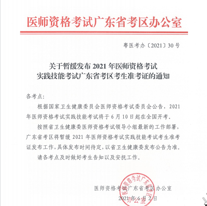 廣東考區(qū)2021年口腔執(zhí)業(yè)醫(yī)師實踐技能準(zhǔn)考證暫緩發(fā)布!