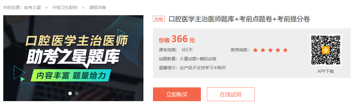口腔主治醫(yī)師考試助考之星題庫+考前金題卷+考前??季恚o扣考試大綱、考試教材,符合考試考試題型與考試科目。復(fù)習輔導(dǎo)資料豐富,免費試用、試題庫大,輔導(dǎo)軟件收錄考前沖刺題、歷年考點練習題等,并提供專業(yè)級解題方法、答題技巧、考試要點精解。提高您考試的應(yīng)試能力,輔導(dǎo)您考試成功。