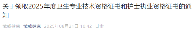 武威關(guān)于領(lǐng)取2025年度口腔主治醫(yī)師考試證書的通知