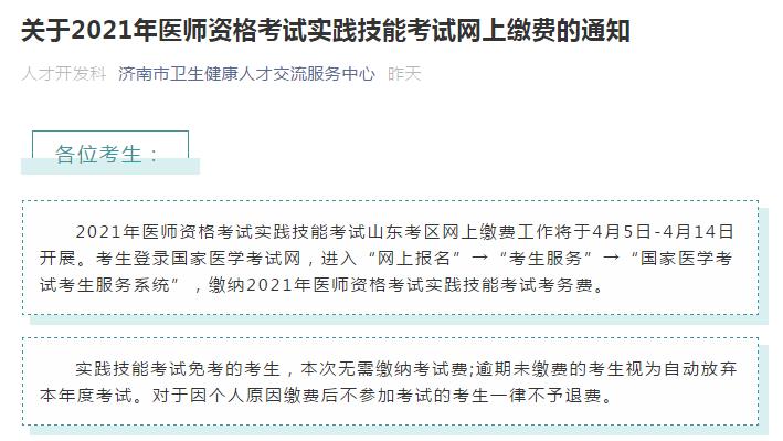 濟(jì)南考點(diǎn)2021年口腔助理醫(yī)師實(shí)踐技能考務(wù)費(fèi)繳納具體時(shí)間