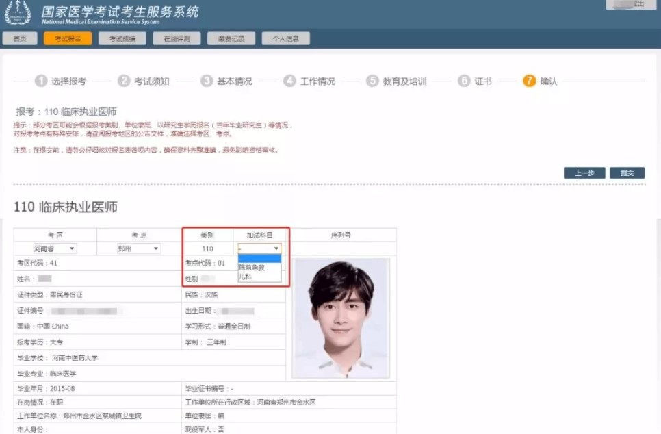 口腔助理醫(yī)師請注意:在類型的選擇時,如果是兒科或院前急救,選擇對應(yīng)的加試的科目,一般是臨床類別的考生選擇,口腔類別的考生不涉及,所以千萬不要選擇?。?!
