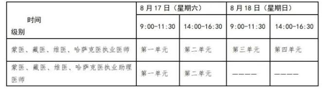 醫(yī)學(xué)綜合考試實行計算機化考試,軍隊現(xiàn)役人員加試軍事醫(yī)學(xué)、院前急救崗位和兒科專業(yè)加試相應(yīng)內(nèi)容。中醫(yī)類別蒙醫(yī)、藏醫(yī)、維醫(yī)、哈薩克醫(yī)專業(yè)實行紙筆考試。統(tǒng)一考試時間如下:
