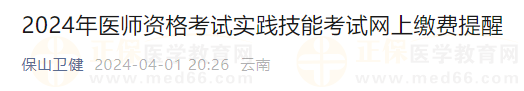 云南保山考點(diǎn)2024年口腔助理醫(yī)師資格考試實(shí)踐技能考試網(wǎng)上繳費(fèi)提醒