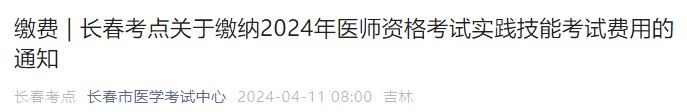 【官方】吉林長(zhǎng)春2024年口腔助理醫(yī)師實(shí)踐技能繳費(fèi)時(shí)間已確定!
