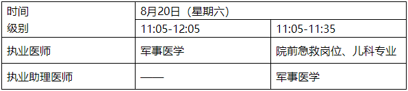 考試實行計算機化考試,軍隊現(xiàn)役人員加試軍事醫(yī)學(xué)、院前急救崗位和兒科專業(yè)加試相應(yīng)內(nèi)容。中醫(yī)類別蒙醫(yī)、藏醫(yī)、維醫(yī)、哈薩克醫(yī)專業(yè)實行紙筆考試。統(tǒng)一考試時間如下: