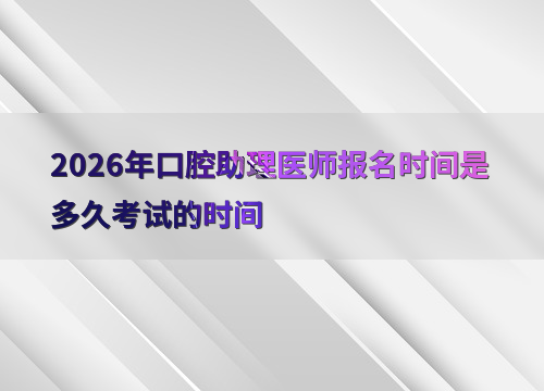 預計2026年口腔助理醫(yī)師考試報名時間為1月至2月,具體日期以國家醫(yī)學考試網(wǎng)公告為準。