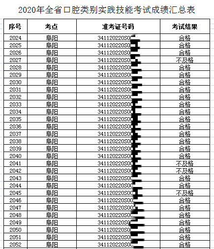 阜陽市考點(diǎn)2020醫(yī)師資格實(shí)踐技能考試(口腔助理醫(yī)師)成績(jī)公示