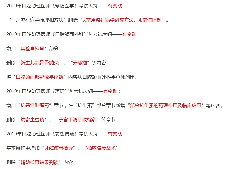 2019年口腔執(zhí)業(yè)助理醫(yī)師考試大綱具體發(fā)生哪些變化?相信是很多考生比較關(guān)注的問題,小編將答案揭曉如下: