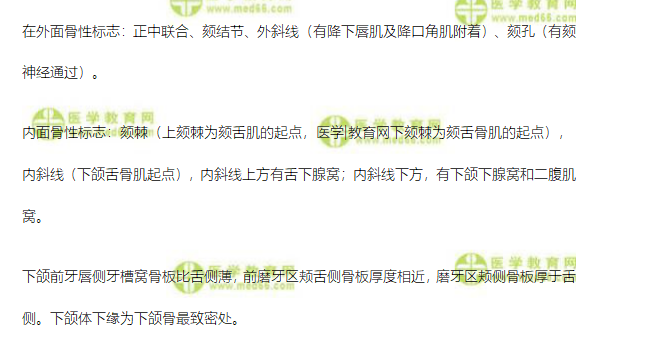備考2019年口腔執(zhí)業(yè)助理醫(yī)師考試的考生相信大家都在緊張備考中,為提高大家備考效率。在此醫(yī)學(xué)教育網(wǎng)小編為大家整理2019年口腔助理口腔解剖生理學(xué)考點(diǎn)“下頜骨解剖特點(diǎn)”,內(nèi)容如下: