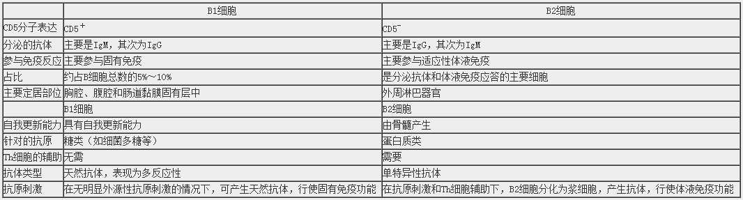 B1細(xì)胞和B2細(xì)胞兩亞群