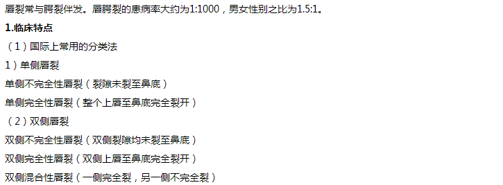 【唇裂概述、臨床表現(xiàn)、治療考頻指數(shù)】★★★★