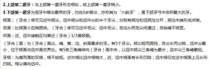 1.上頜第一磨牙約在6歲左右萌出,故稱其為“六齡牙”,是上頜中體積最大的牙。