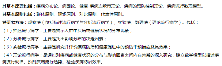 流行病學(xué)是研究人群中疾病與健康狀況的分布及其影響因素,并研究防治疾病及促進(jìn)健康的策略和措施的科學(xué)。概括起來有以下四方面:①研究對(duì)象是人群;②關(guān)注的事件包括疾病與健康狀況;③主要研究內(nèi)容包括揭示現(xiàn)象、找出原因、提供措施、評(píng)價(jià)效果;④目的是防治疾病、促進(jìn)健康。