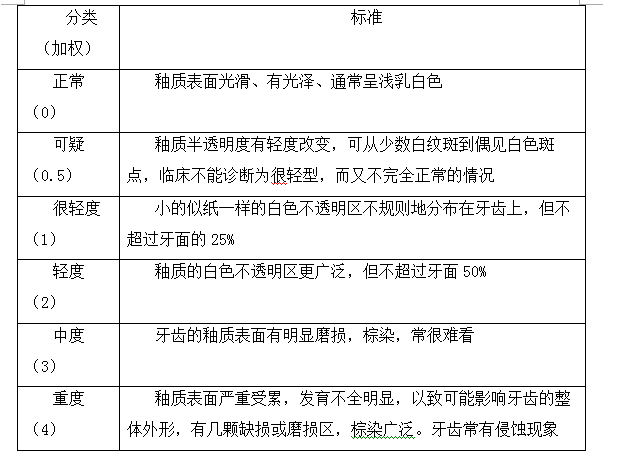 4.Dean氟牙癥分類系統(tǒng)標(biāo)準(zhǔn)