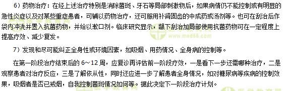 3)消除菌斑滯留因素及其他局部刺激因素,如充填齲洞、改正不良修復(fù)體、治療食物嵌塞等,還應(yīng)做必要的牙髓治療、糾正口呼吸習(xí)慣等。
