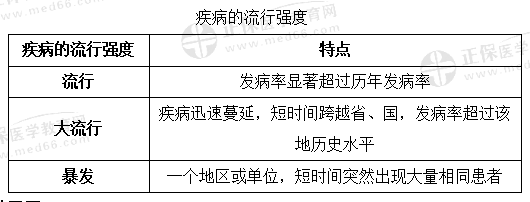 【答案解析】 疾病的流行強度是指某疾病在某地區(qū)、某人群中,一定時期內(nèi)發(fā)病數(shù)量的變化及各病例間聯(lián)系的程度。包括散發(fā)、流行、大流行、暴發(fā)。