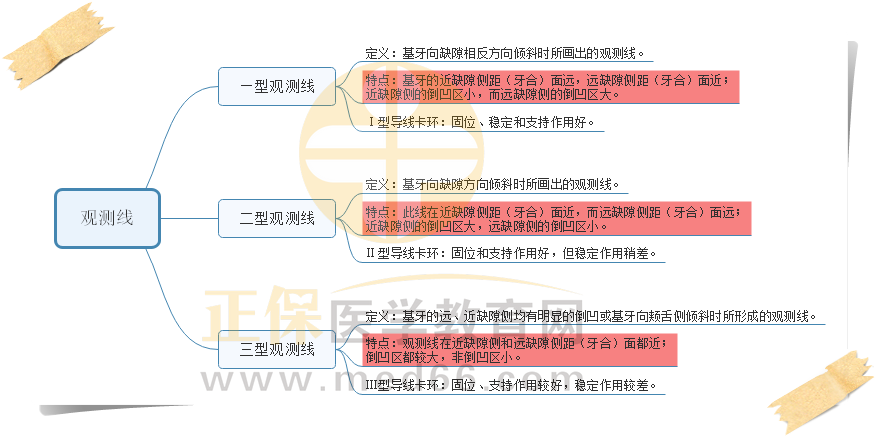 口腔助理醫(yī)師歷年考點(diǎn)一型、二型、三型觀測(cè)線思維導(dǎo)圖