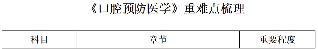 《口腔預(yù)防醫(yī)學(xué)》各章節(jié)復(fù)習(xí)重難點分布