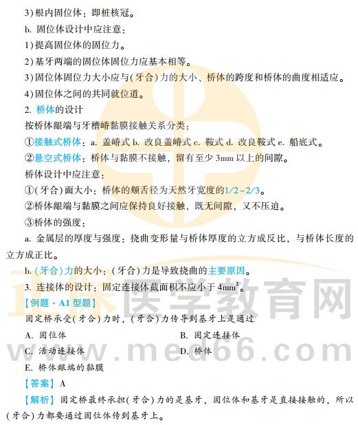 2022年口腔醫(yī)師口腔修復(fù)學沖刺:固定義齒設(shè)計(含經(jīng)典例題)