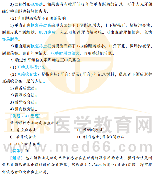 2022年口腔助理醫(yī)師考點(diǎn)口腔修復(fù)學(xué)———全口義齒頜位關(guān)系的確定