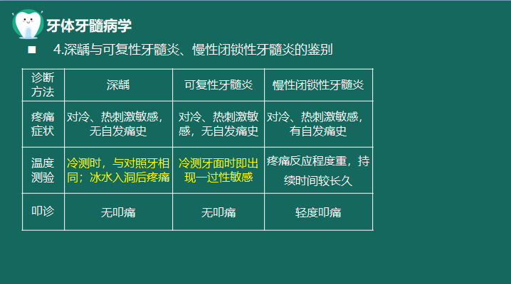 深齲、可復(fù)性牙髓炎與慢性閉鎖性牙髓炎的鑒別