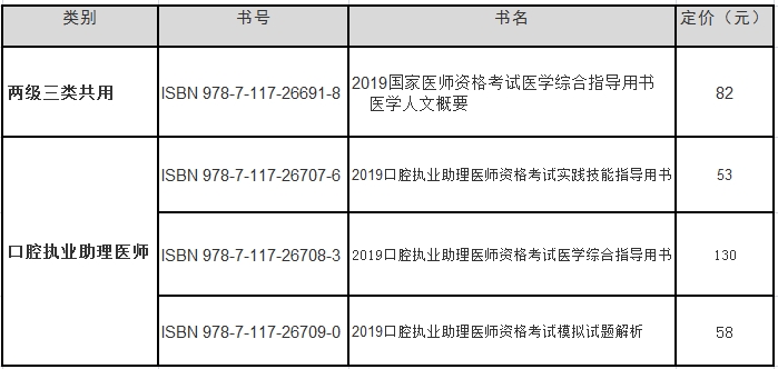 - · 2021年口腔助理醫(yī)師考試書(書號(hào)、書名、定價(jià))公布