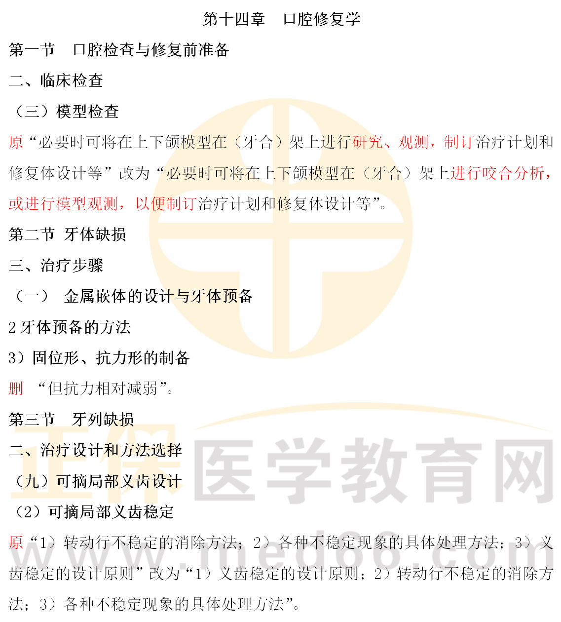 2022年口腔助理醫(yī)師《口腔修復(fù)學(xué)》教材重點(diǎn)變動說明