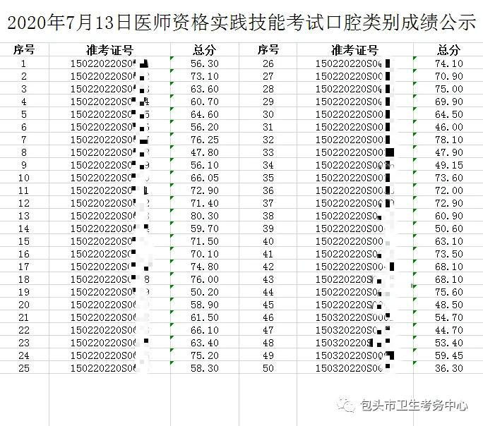 7月13日包頭市考點(diǎn)口腔執(zhí)業(yè)助理醫(yī)師實(shí)踐技能考試成績(jī)公布