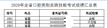安徽省直考點(diǎn)2020年口腔助理醫(yī)師實(shí)踐技能考試成績合格名單