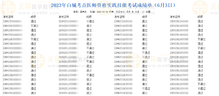 吉林白城官方發(fā)布了(6月3日) 醫(yī)師資格實踐技能考試成績,正保醫(yī)學教育網(wǎng)小編整理如下,請相關考生及時查看,同時關注后續(xù)筆試繳費通知!