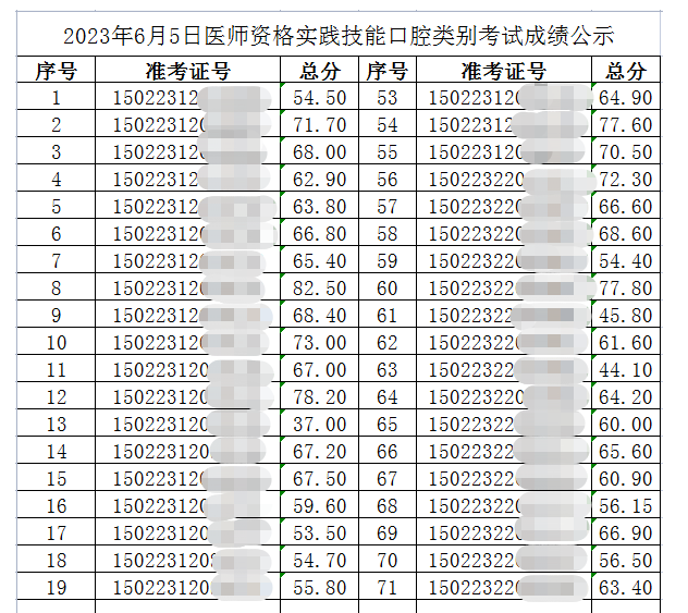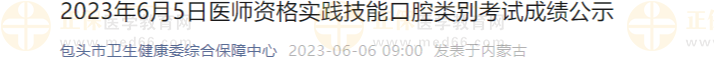 內(nèi)蒙古包頭2023年6月5日口腔助理醫(yī)師資格實(shí)踐技能成績(jī)公示