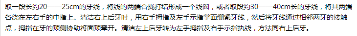 3.將牙線從(牙合)面方向取出,以此進入相鄰牙間隙,逐個將全口牙鄰面菌斑徹底刮除。